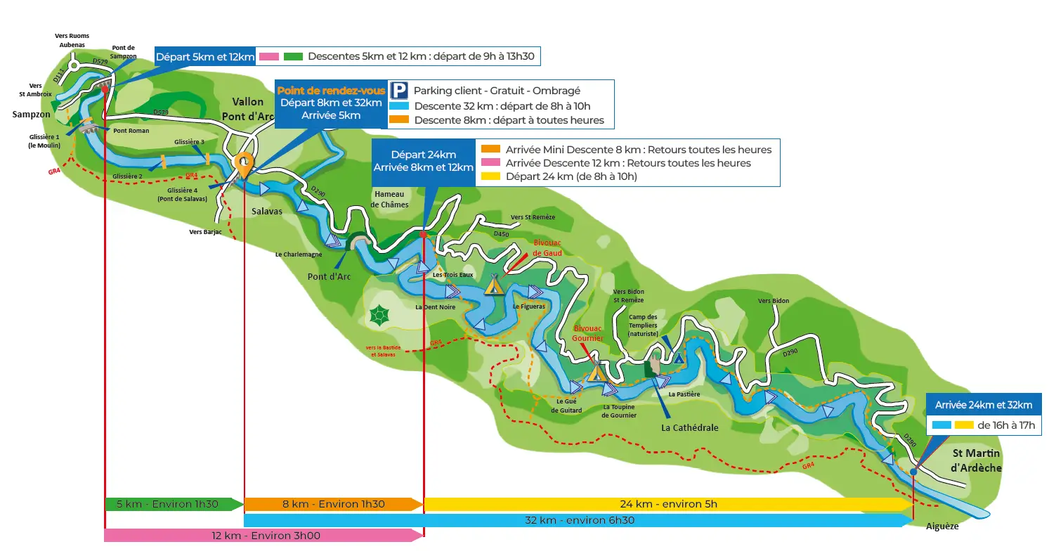 PLAN DES PACOURS CANOË DANS LES GORGES DE L'ARDÈCHE
