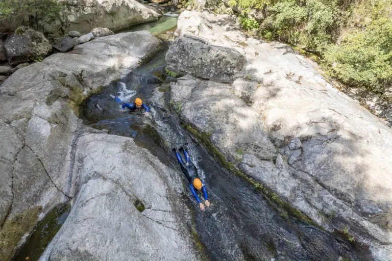 Le canyon de la Besorgues offre un décor grandiose : vasques claires, toboggans naturels, passages dans la roche et petite tyrolienne en fin de parcours. Ce cadre impressionne par sa beauté, mais reste accessible et rassurant, idéal pour une première approche du canyoning.🎉 Une aventure partagée à vivre à son rythme