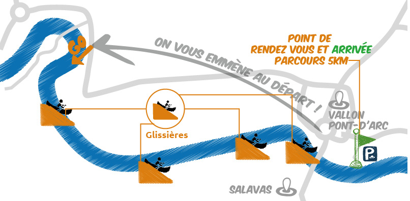 La descente de l’Ardèche 5km est un parcours parfait pour débuter dans la pratique du canoë kayak et initier de jeunes enfants (dès 7 ans). ce parcours ne comprends pas de rapides et ne nécessite aucune compétence de pagayage particulière.