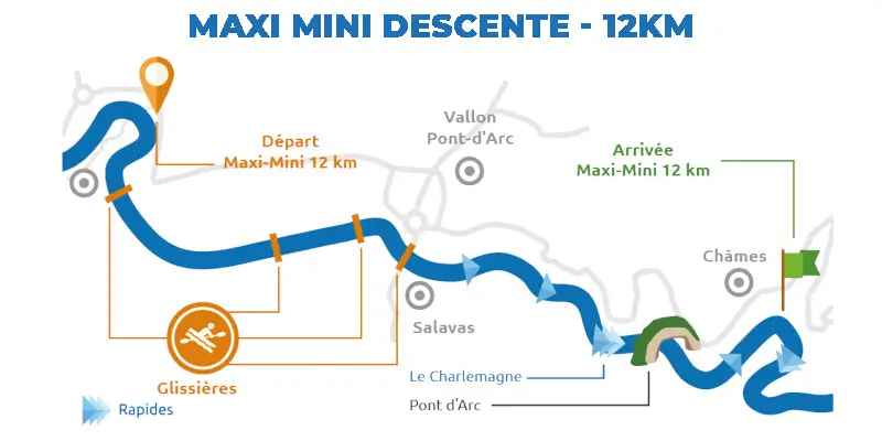 La descente de l’Ardèche 12 km « maxi mini » : un itinéraire qui combine les parcours de 5km et celui de 8km.