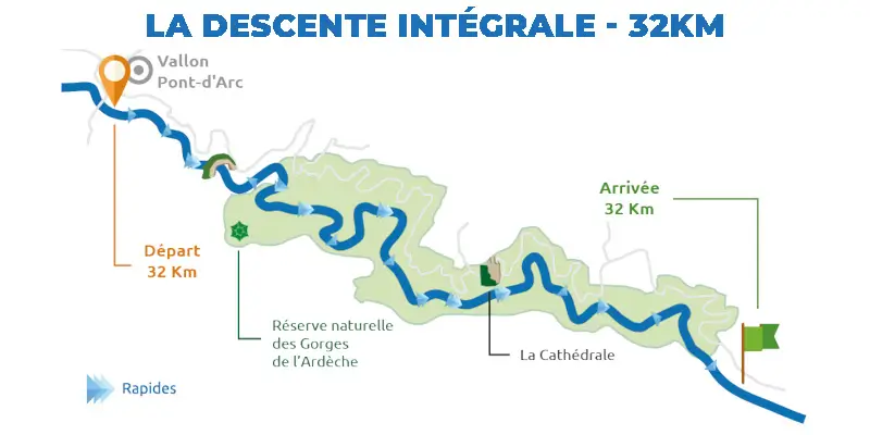 La descente de l’Ardèche 32 km est le parcours le plus complet et le plus sportif.